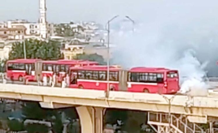 Rawalpindi (LTN NEWS): Metro bus management says that the fire started in the engine of the metro bus and spread to the entire bus, the occupants of the bus were safe but the bus was completely burnt.