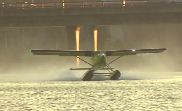 The De Havilland Beaver, a seaplane that Harbour Air had fixed up, flew a test flight from the Canadian mainland to Vancouver Island to show that it was possible to fly without fuel.